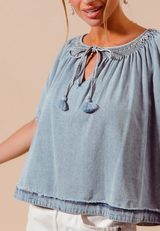 Sky’s Blue Denim Dolman Top