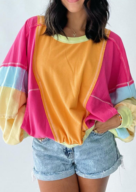 Plus Oat Patchwork Sleeve Top