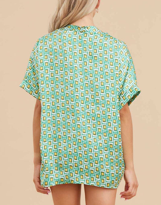 Green Geo Dots Plus Blouse
