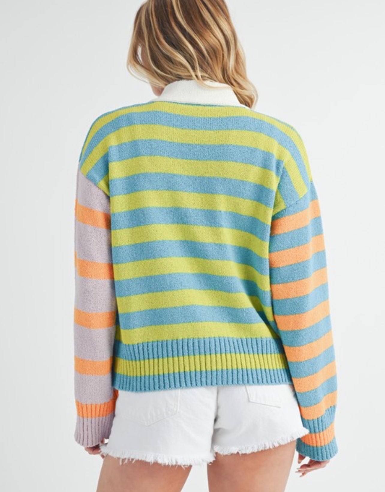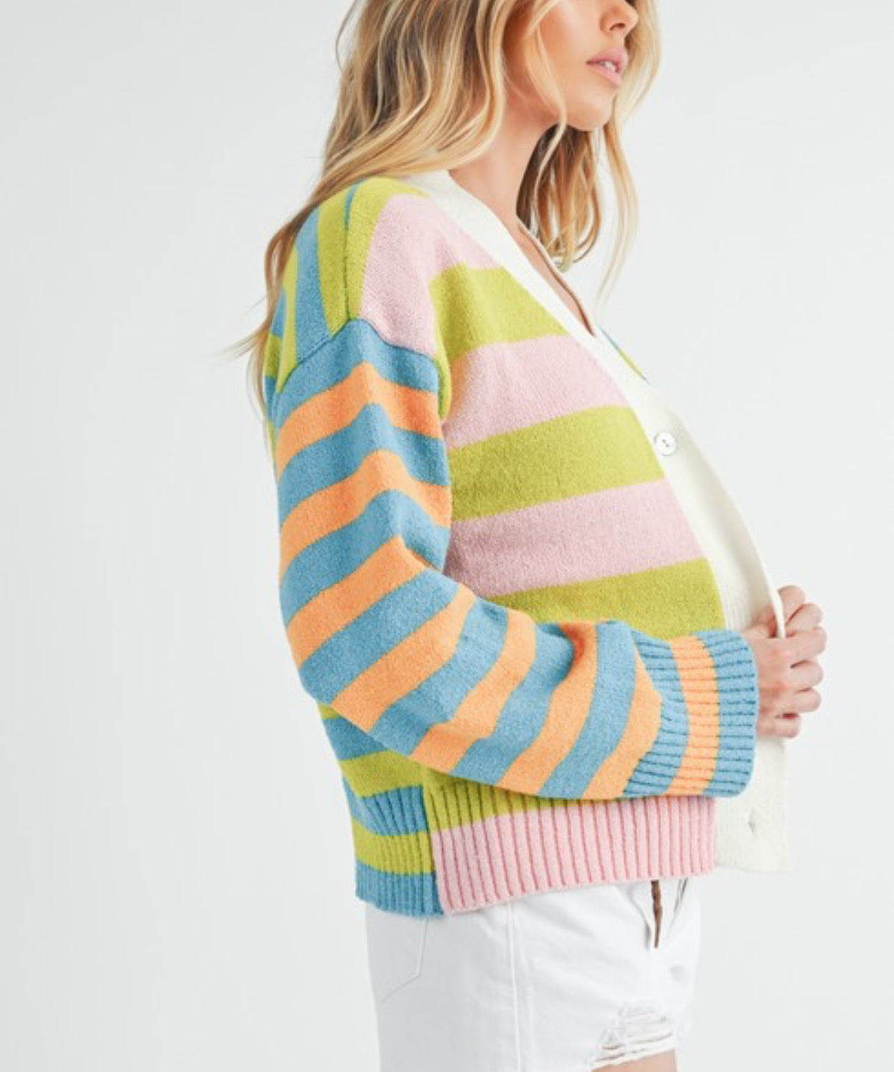 Cardigan of many colored stripes