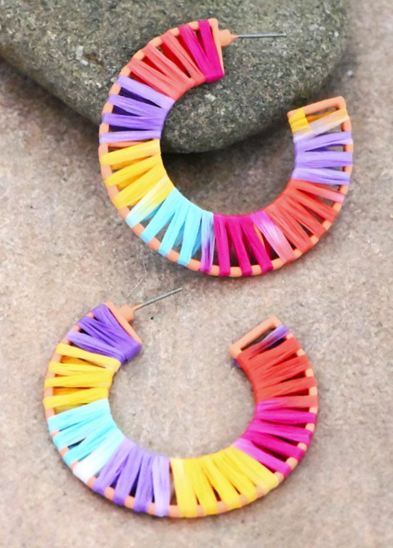 Colorful Raffia Wrapped Hoops