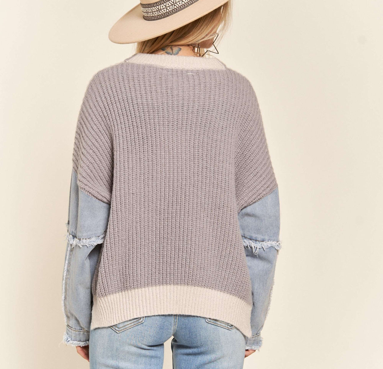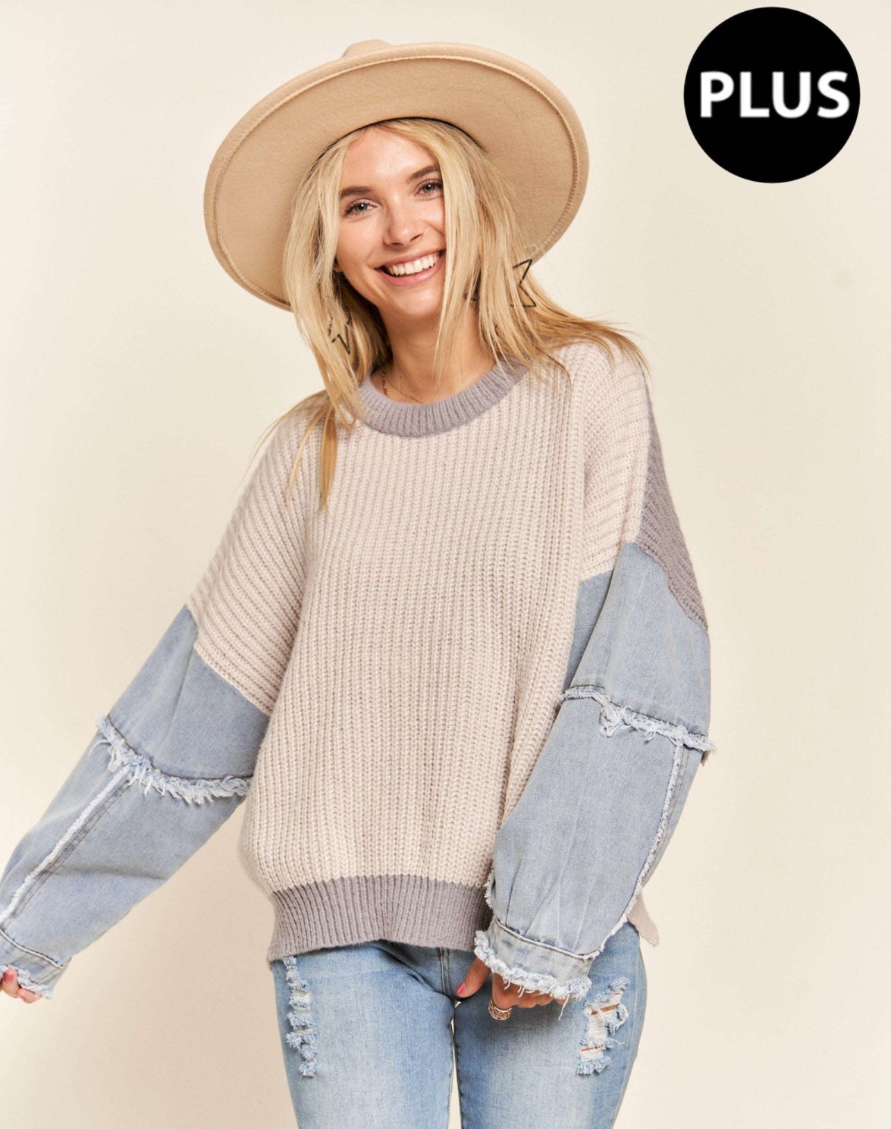 Denim Sleeved Colorblock Plus Sweater