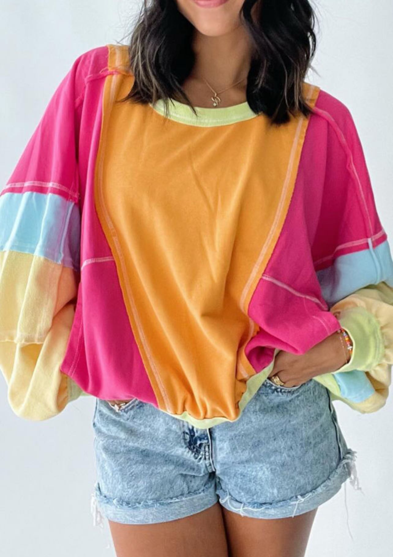 Bring in spring with the fun this pullover adds to any outfit! Throw on jeans, leggings, or joggers and be sure to have lots of compliments collected from this piece!